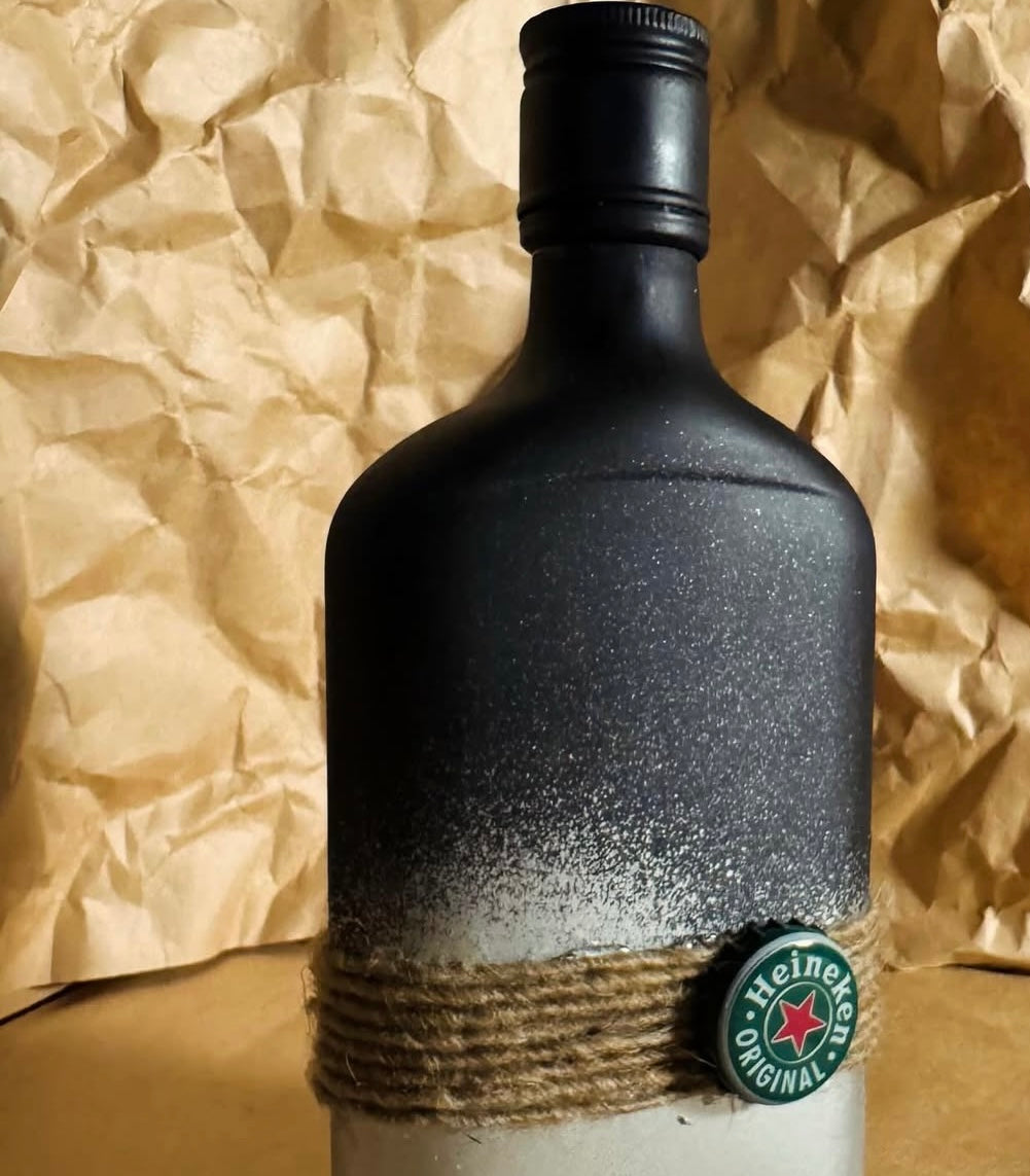 This bottle balances contrast - dark fading to light — symbolizing harmony between modernity and tradition. Handcrafted with a rustic twist, it's an eye-catching blend of natural rope and industrial tones. A unique décor item that pairs perfectly with minimalist, rustic, or industrial-style spaces. From bar setups to living room accents, this bottle brings a subtle but bold design statement.